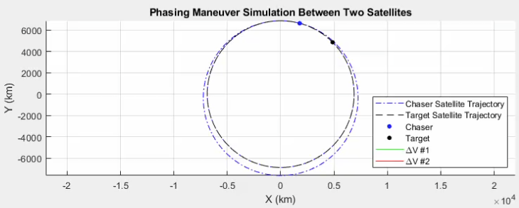 This project focuses on demonstrating coplanar phasing rendezvous maneuvers that a chaser satellite can perform to rendezvous with a target satellite. View on Github